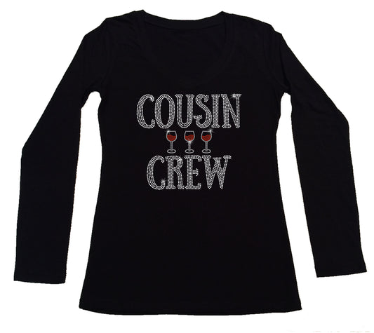 Women's Rhinestone Tight Snug Shirt Cousin Crew w/ Red Wine Glasses