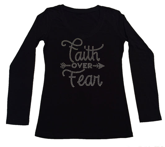 Women's Rhinestone Fitted Tight Snug Shirt Faith Over Fear in AB