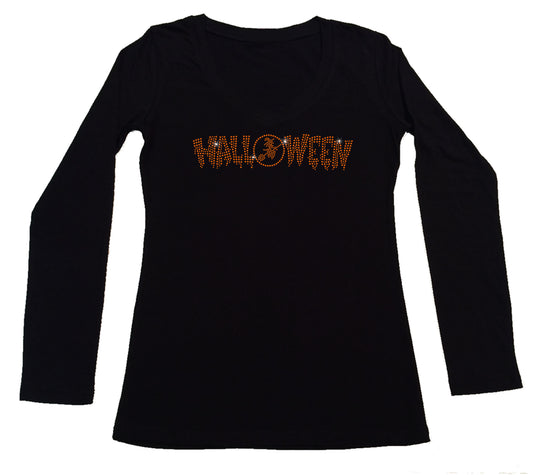 Women's Rhinestone Fitted Tight Snug Shirt Halloween with Witch - Halloween Shirt, Halloween Party, Witch Shirt