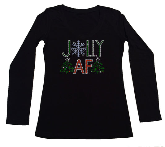 Women's Rhinestone Fitted Tight Snug Shirt Jolly AF - Christmas Shirt