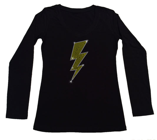 Women's Rhinestone Fitted Tight Snug Shirt Lightning Bolt
