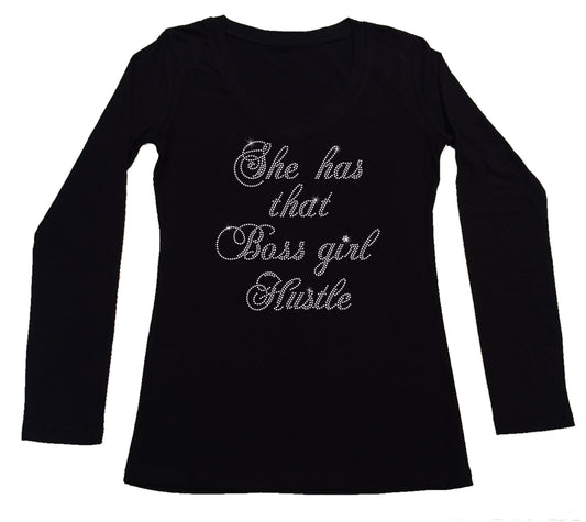 Women's Rhinestone Fitted Tight Snug Shirt She has That Girl Boss Hustle - Boss Shirt