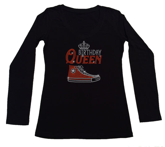 Women's Rhinestone Fitted Shirt Birthday Queen w Chuck Shoe