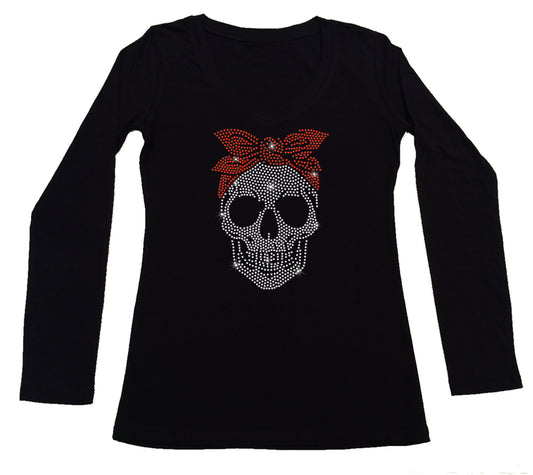 Women's Rhinestone Fitted Shirt Girl Skull w Red Bandana