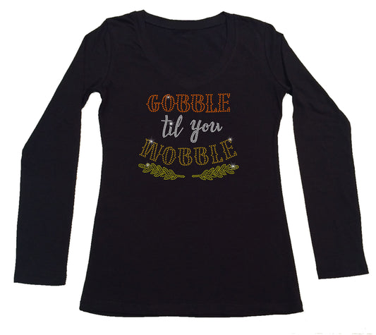 Womens T-shirt with Gobble til you Wobble in Rhinestones