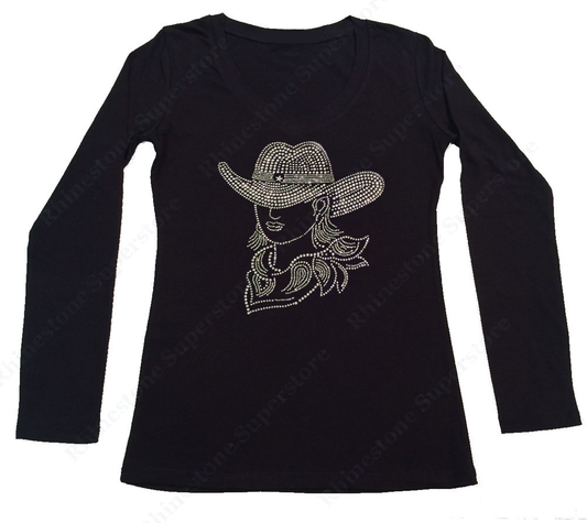 Womens T-shirt with Sexy Cowgirl with Hat in Rhinestones