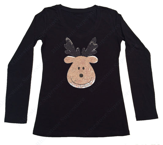 Womens T-shirt with Cute Silver Reindeer in Sequence