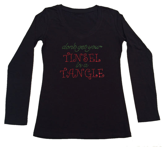 Womens T-shirt with Don't Get Your Tinsel in a Tangle in Rhinestones