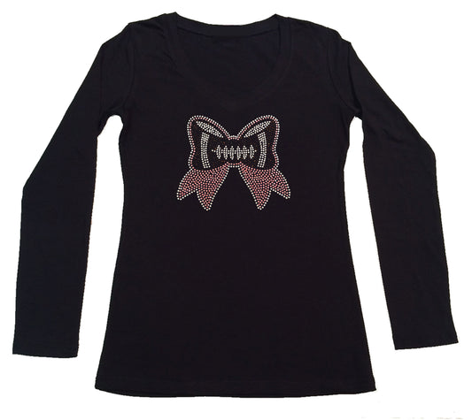 Womens T-shirt with Football Pink Ribbon in Rhinestones