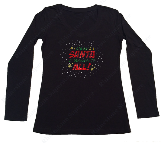 Womens T-shirt with Dear Santa I Want it All in Rhinestones