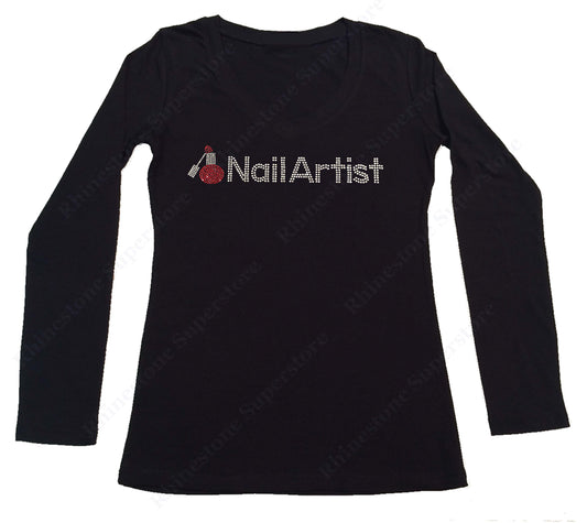 Womens T-shirt with Nail Artist with Nail Polish Bottle in Rhinestones