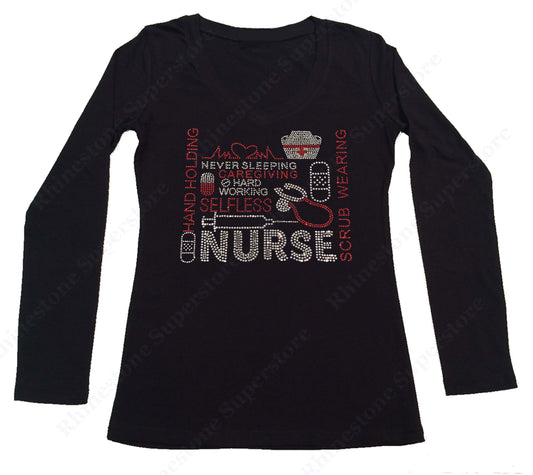 Womens T-shirt with Nurse in Rhinestones
