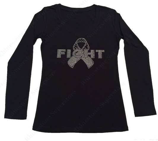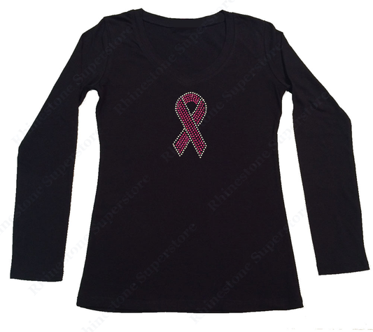 Womens T-shirt with Pink Cancer Ribbon in Rhinestones