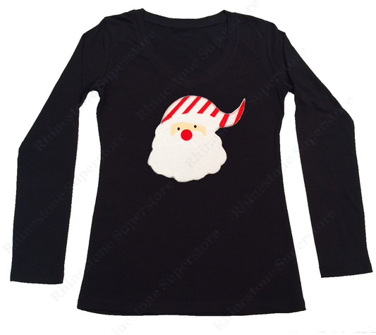 Womens T-shirt with Santa with Candy Cane Hat in Puff Material Patch