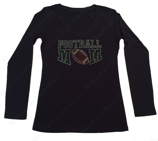 Womens T-shirt with Saphirre Football Mom in Rhinestones