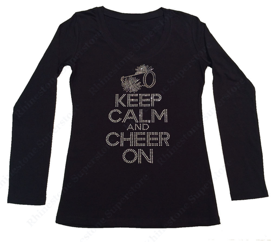 Womens T-shirt with Keep Calm and Cheer On in Rhinestones