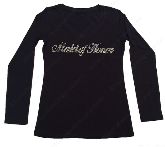 Womens T-shirt with Maid of Honor in Script in Rhinestones