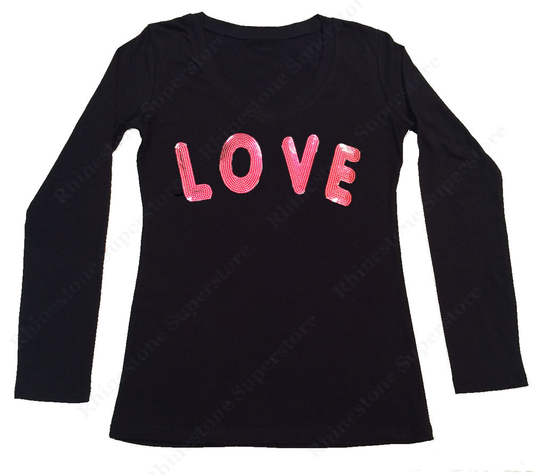 Womens T-shirt with Pink Cancer Ribbon with Crystal Heart in Rhinestones