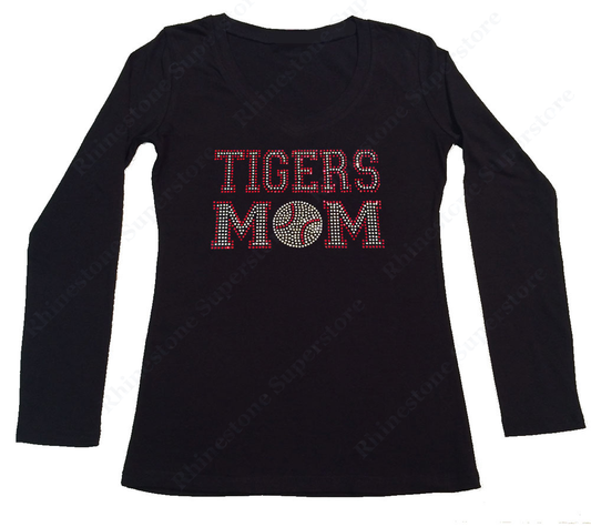 Womens T-shirt with Red Tigers Mom in Rhinestones