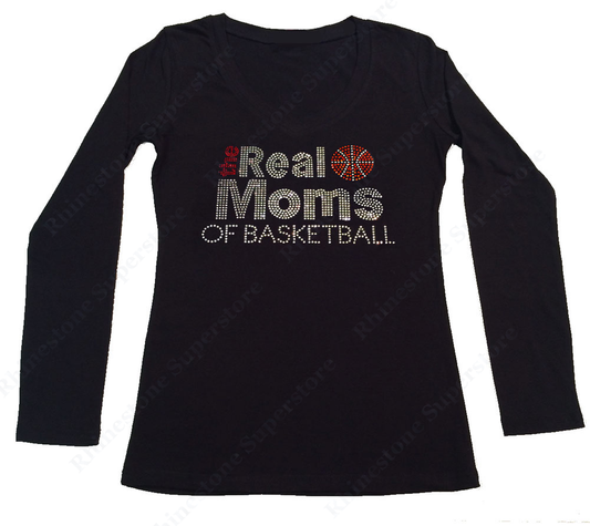Womens T-shirt with the Real Moms of Basketball in Rhinestones