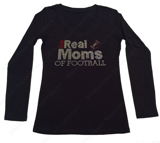 Womens T-shirt with the Real Moms of Football in Rhinestones