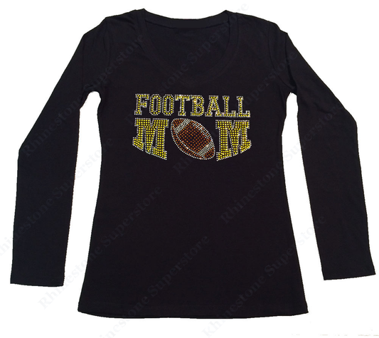 Womens T-shirt with Yellow Football Mom in Rhinestones