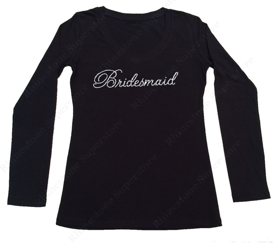 Womens T-shirt with Bridesmaid in Script Single Line Font in Rhinestones