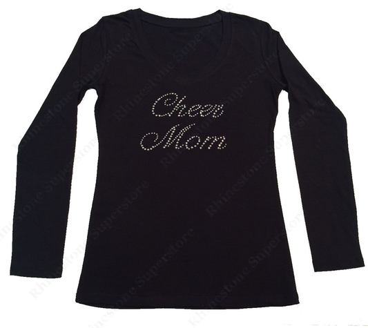 Womens T-shirt with Cheer Mom With Megaphone in Rhinestones
