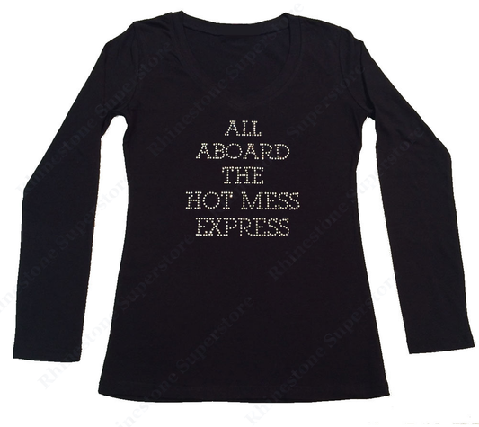 Womens T-shirt with Crystal All Aboard the Hot Mess Express in Rhinestones