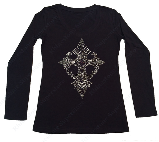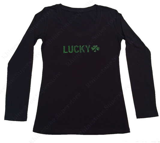 Womens T-shirt with Lucky 3 Leaf Clover in Rhinestones