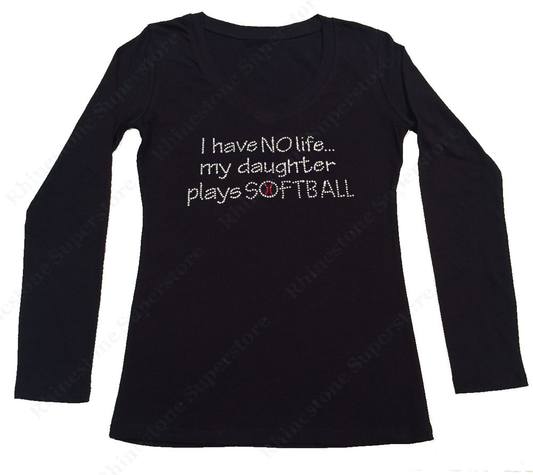 WomRhinestone T-Shirt " I have No Life my Daughter Plays Softball " in S, M, L, 1X, 2X, 3X - Bling