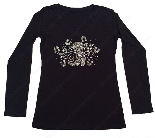 Womens T-shirt with Cowgirl Boot with Horseshoe in Rhinestones