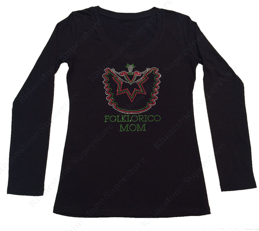 Womens T-shirt with Folklorico Mom in Rhinestones