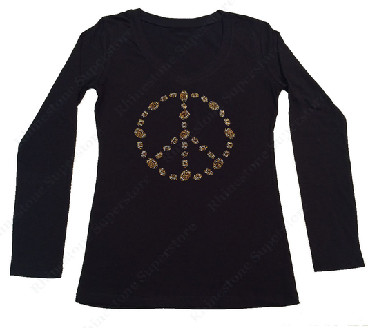 Womens T-shirt with Football Peace Sign in Rhinestones