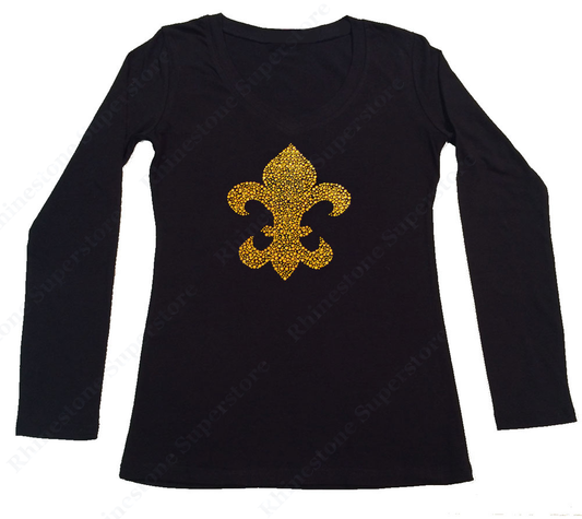 Womens T-shirt with Gold Fleur De Lis in Rhinestuds