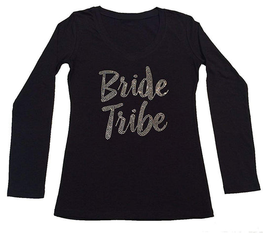 Womens T-shirt with Bride Tribe in Rhinestones