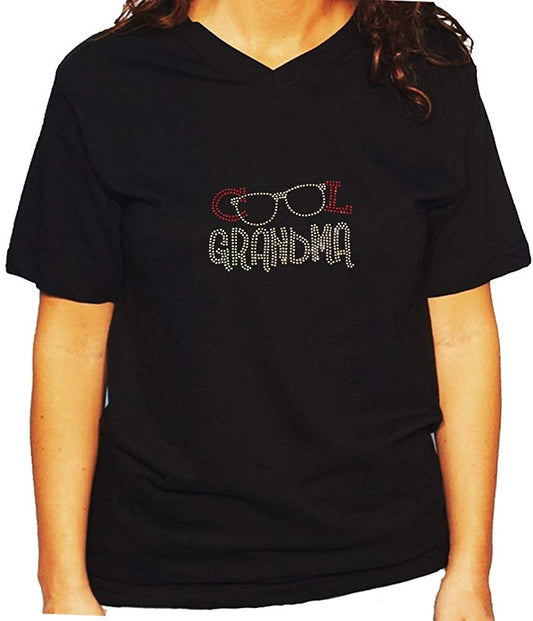 Women's / Unisex T-Shirt with Cool Grandma Glasses in Rhinestones