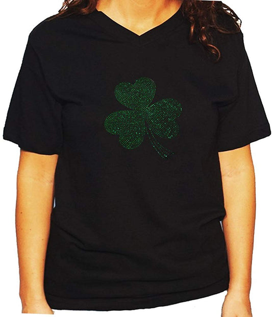 Women's / Unisex T-Shirt with ST. Patrick's Day Clover In Rhinestones