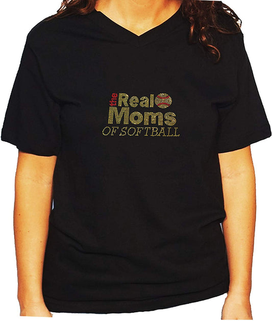 Women's / Unisex T-Shirt with The Real Moms of Softball in Rhinestones