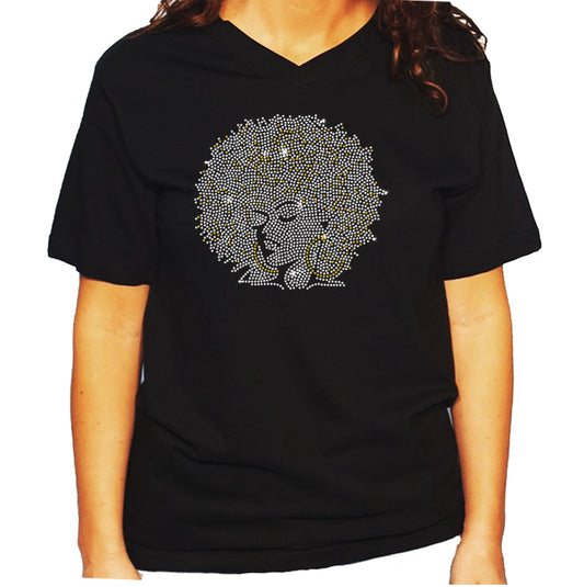 Women's / Unisex T-Shirt with Afro Girl With Gold Hoops in Rhinestones