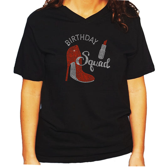 Women's / Unisex T-Shirt with Birthday Squad w Heel in Rhinestones