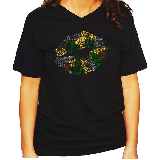 Women's / Unisex T-Shirt with Camo Lips in Rhinestones