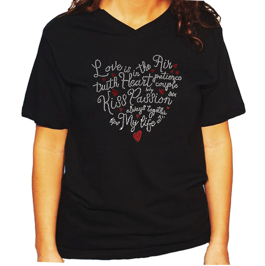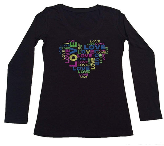 Women's / Unisex T-Shirt with Love Saying Heart in Rhinestones