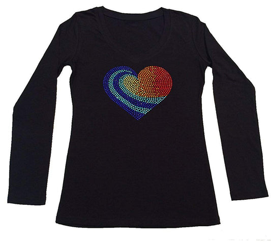 Womens T-shirt with Colorful Heart in Rhinestuds