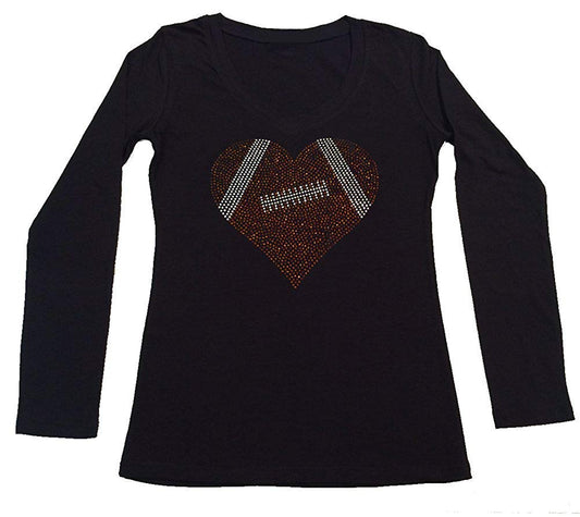 Womens T-shirt with Football Heart in Rhinestones