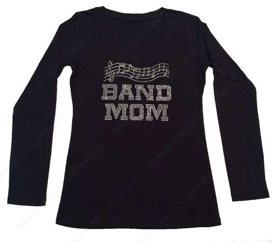 Womens T-shirt with Band Mom with Music Notes in Rhinestones
