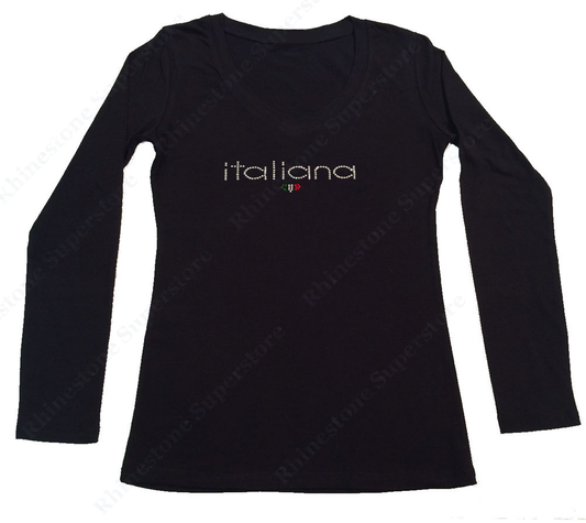 Womens T-shirt with Christmas Fleur de lis in Rhinestones
