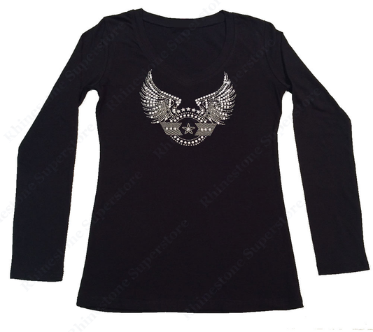 Womens T-shirt with Gothic Dragon in Rhinestones