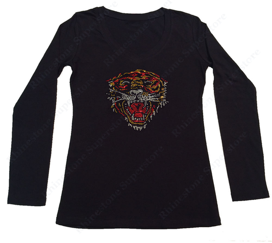 Womens T-shirt with Huge Tiger Face in Rhinestones