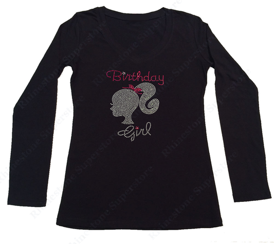 Womens T-shirt with Birthday Girl with Silhouette in Rhinestones